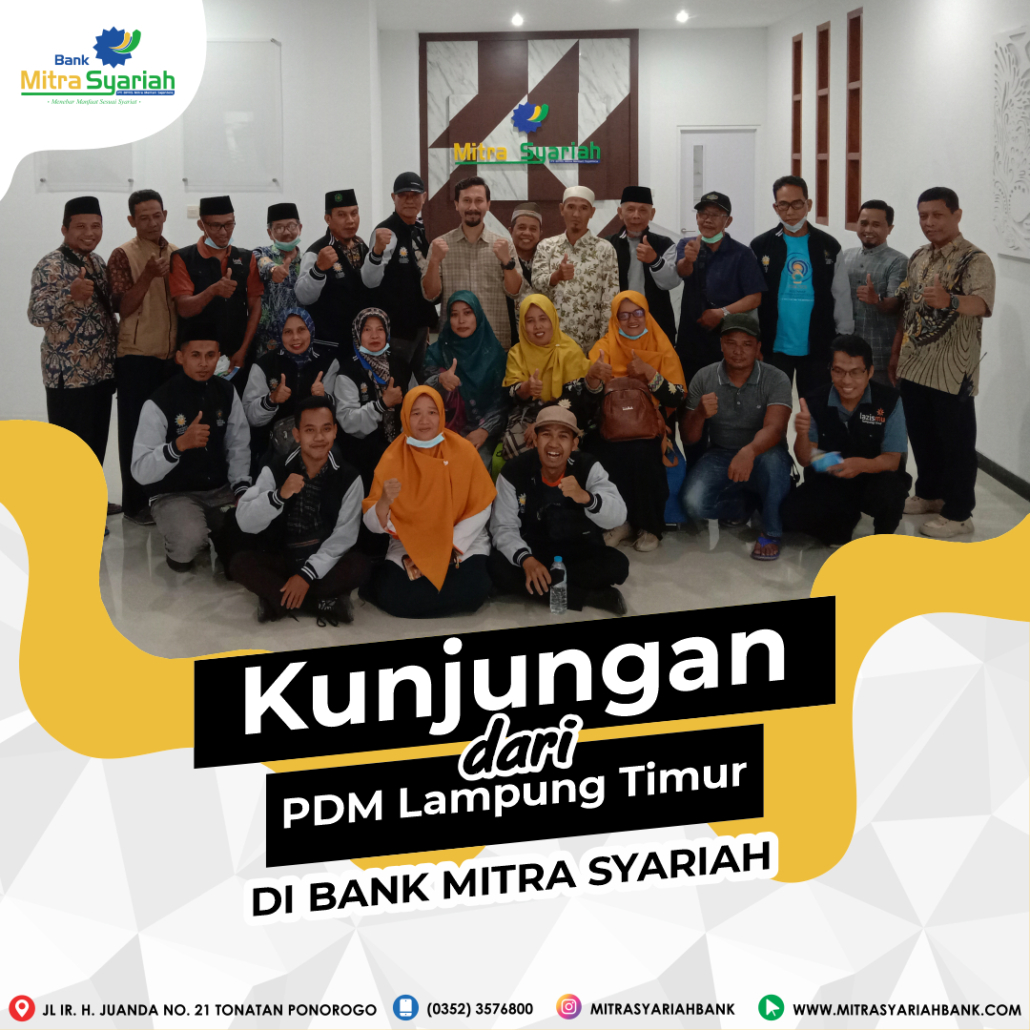 Ponorogo, Kamis 17 November 2022 Bank Mitra Syariah Ponorogo menerima kunjungan dari PDM (Pimpinan Daerah Muhammadiyah) Lampung Timur. Rombongan disambut Bpk. Rudi Candra Setiawan selaku Direktur Utama Bank Mitra Syariah yang beralamat di Jalan Ir. Juanda No. 21, Ponorogo, Jawa Timur.