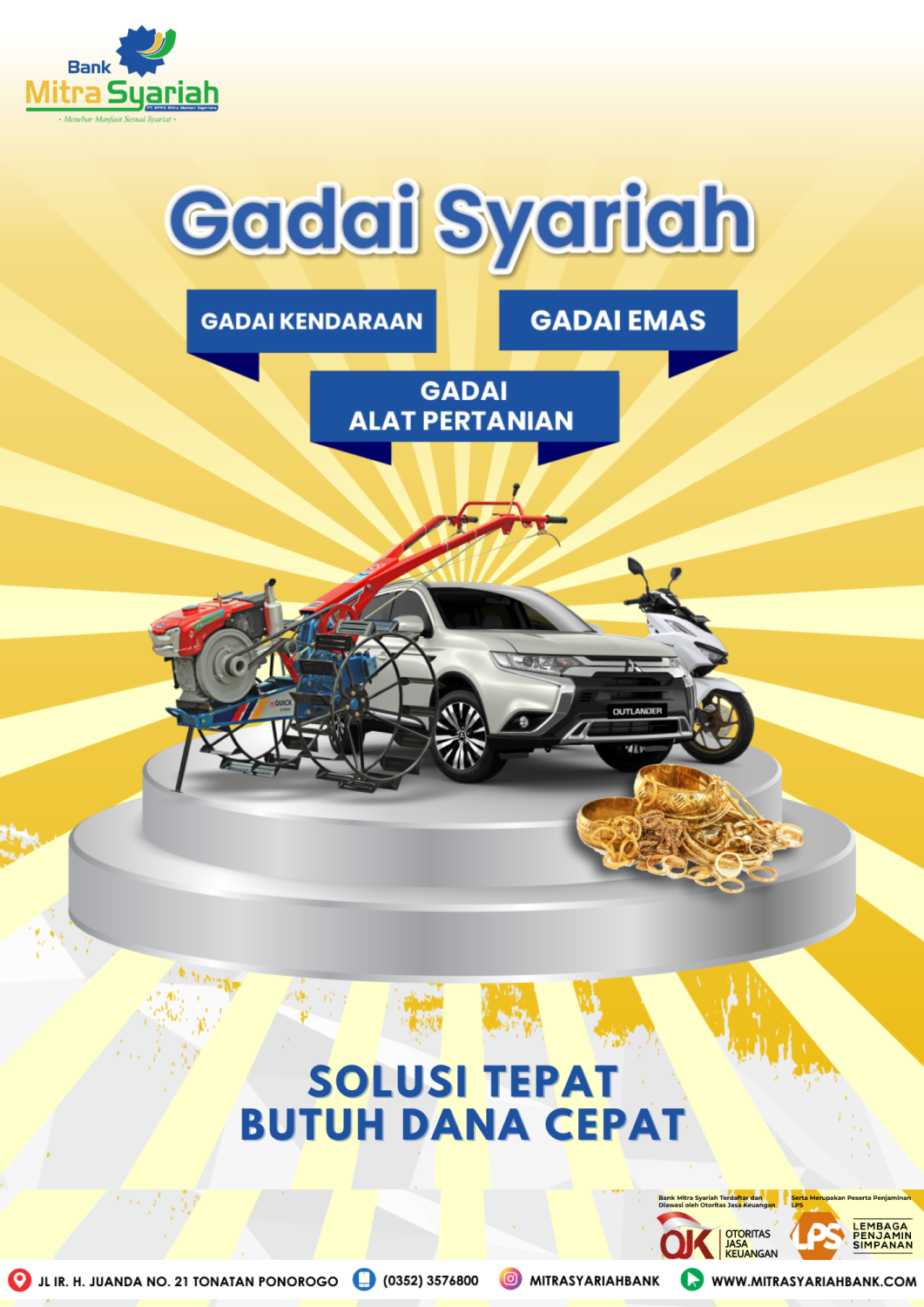 Pinjaman dana dengan jaminan emas, kendaraan, dan alat pertanian.